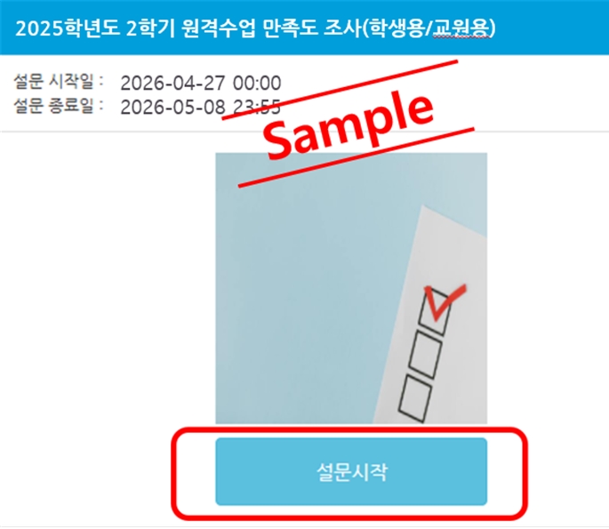 교수학습센터에서 2026학년도 1학기 원격수업 만족도 조사(학생 / 교원)를 아래와 같이 실시합니다.
